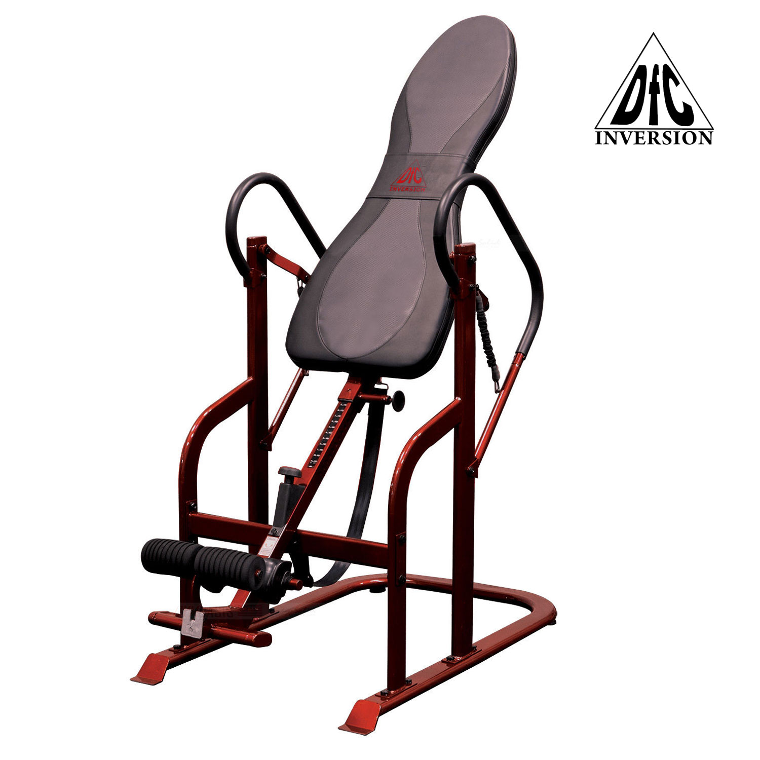 Инверсионный стол с регулировкой под рост пользователя от 147 до 198 см. Регулировка угла наклона с помощью ремня.