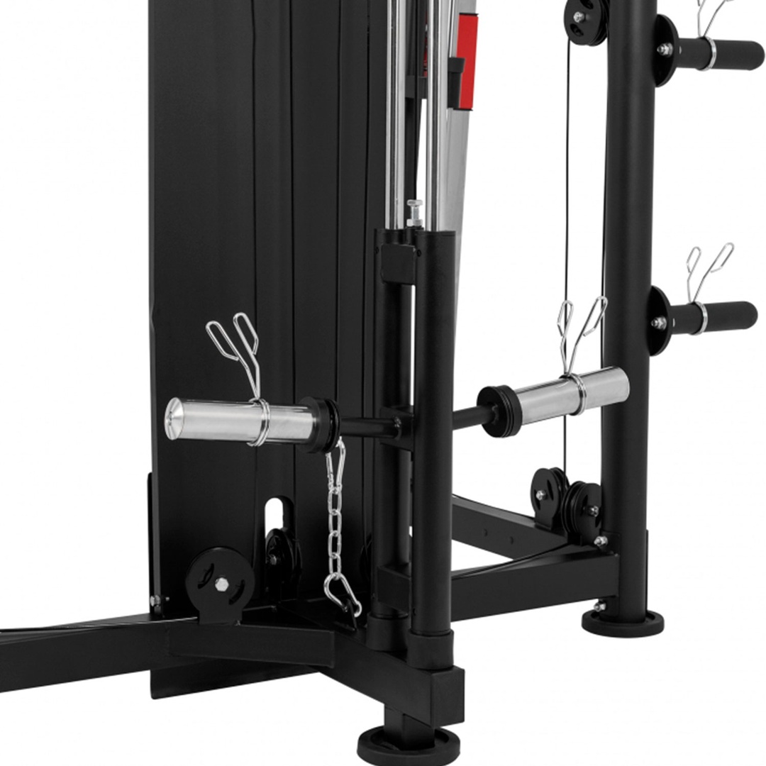 В качестве весовой нагрузки всех элементов мультистанции необходимо использовать свободные веса (диски) с посадочным диаметром 51мм (опция, приобретаются отдельно). Для фиксации дисков в комплекте 14 хромированных зажимов.