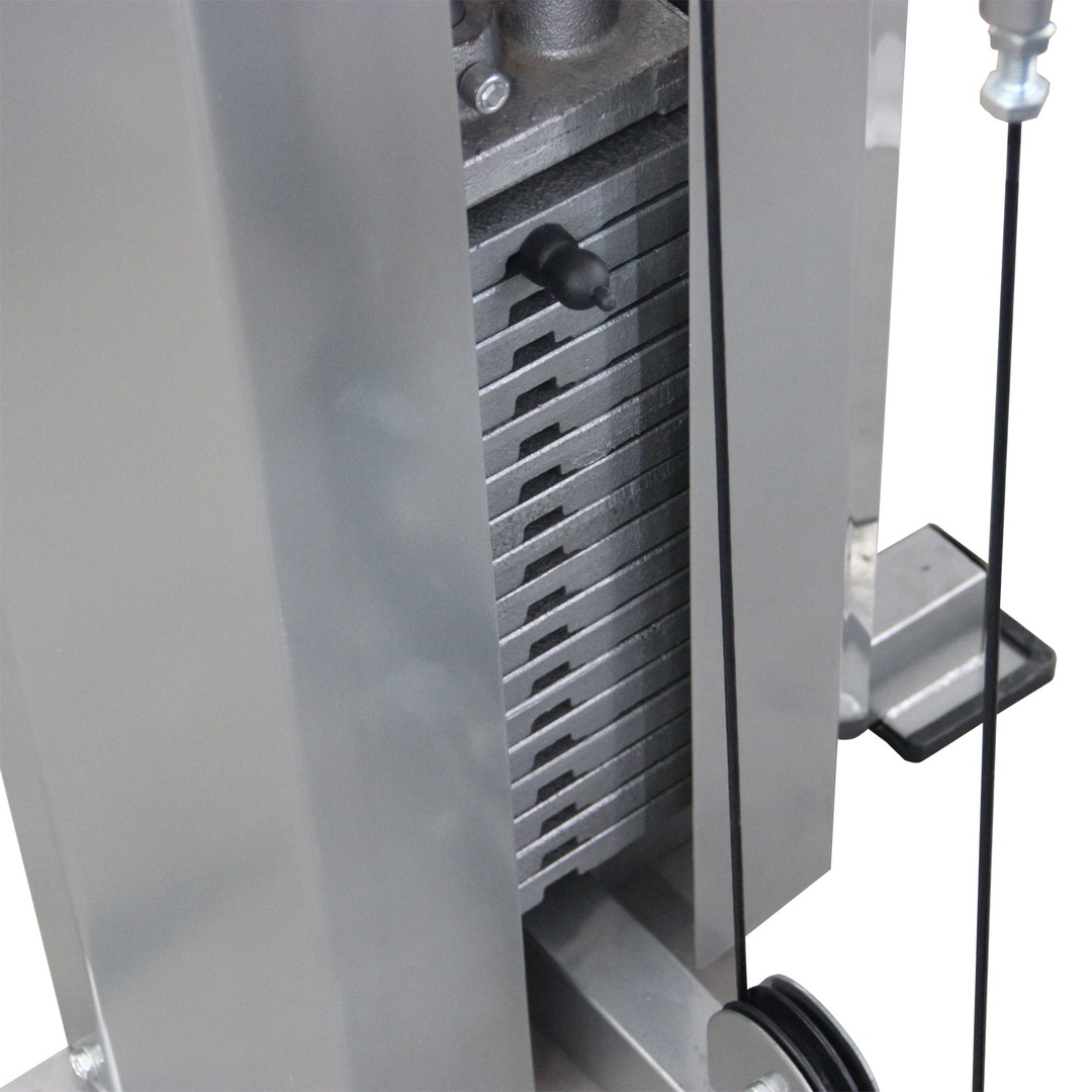 Ролики на подшипниках обеспечивают плавное движение. Весовой стек имеет защитный кожух для безопасности пользователя.