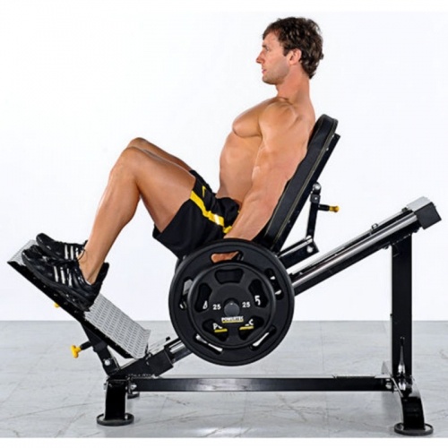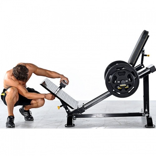 Рычаг старт / стоп обеспечивает необходимую величину дистанции перемещения платформы сиденья. Удобный нескользящий упор для ног с изменяемым углом наклона. Для изменения нагрузки на участки стопы предусмотрена специальная выдвижная площадка.