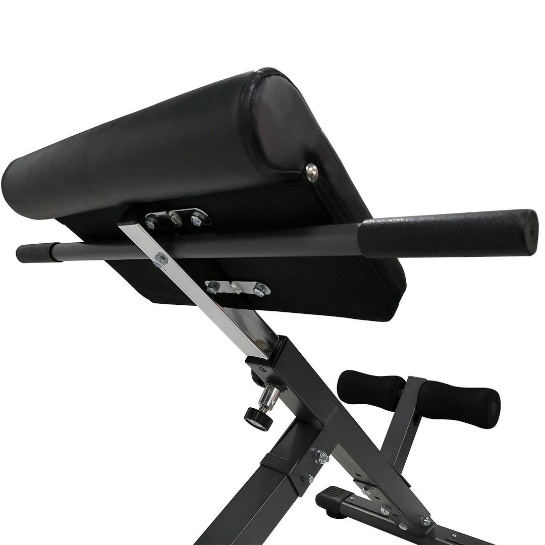 Гиперэкстензия позволяет комфортно и безопасно тренировать мышцы живота и нижней части спины, а так же внутренние и наружные мышцы бедра.