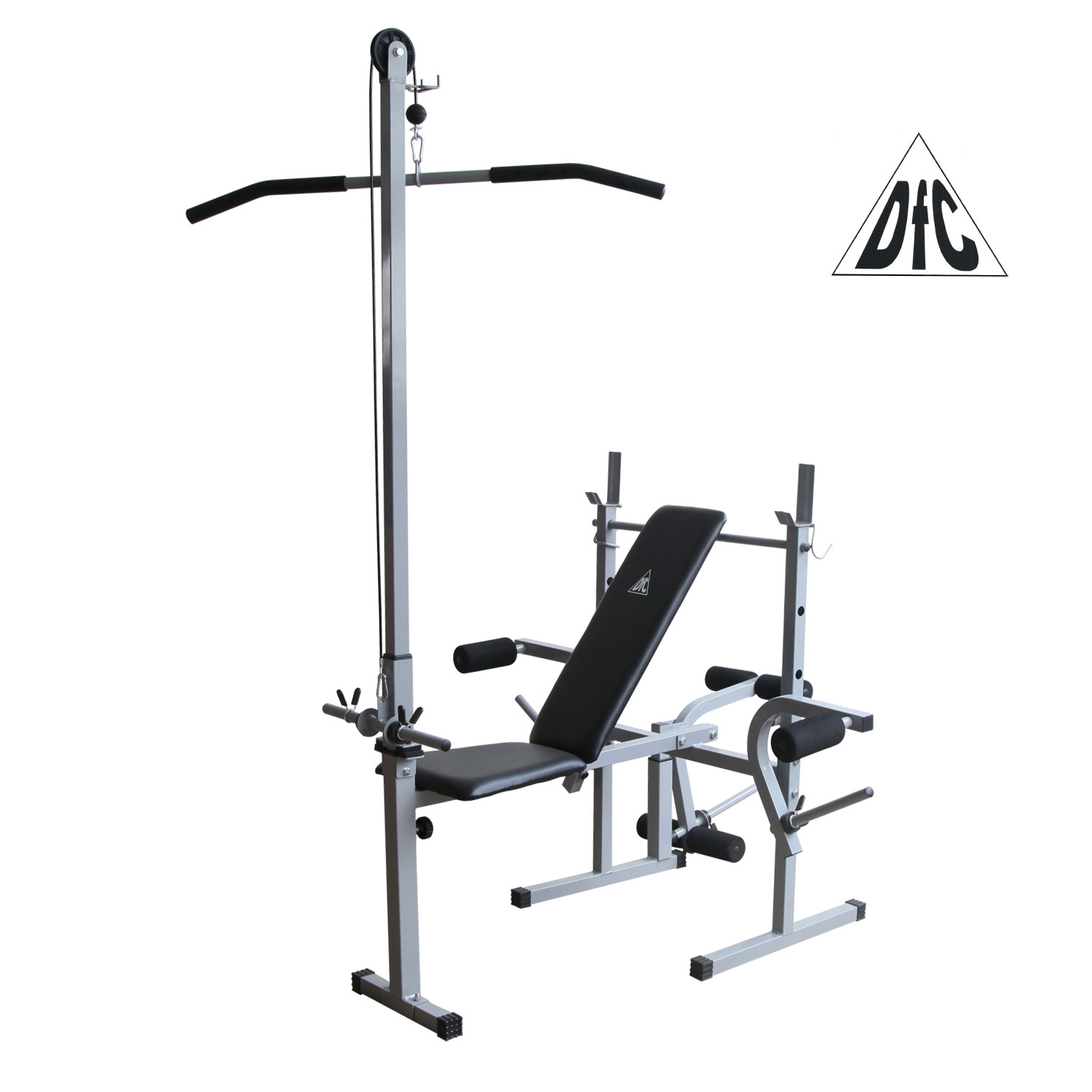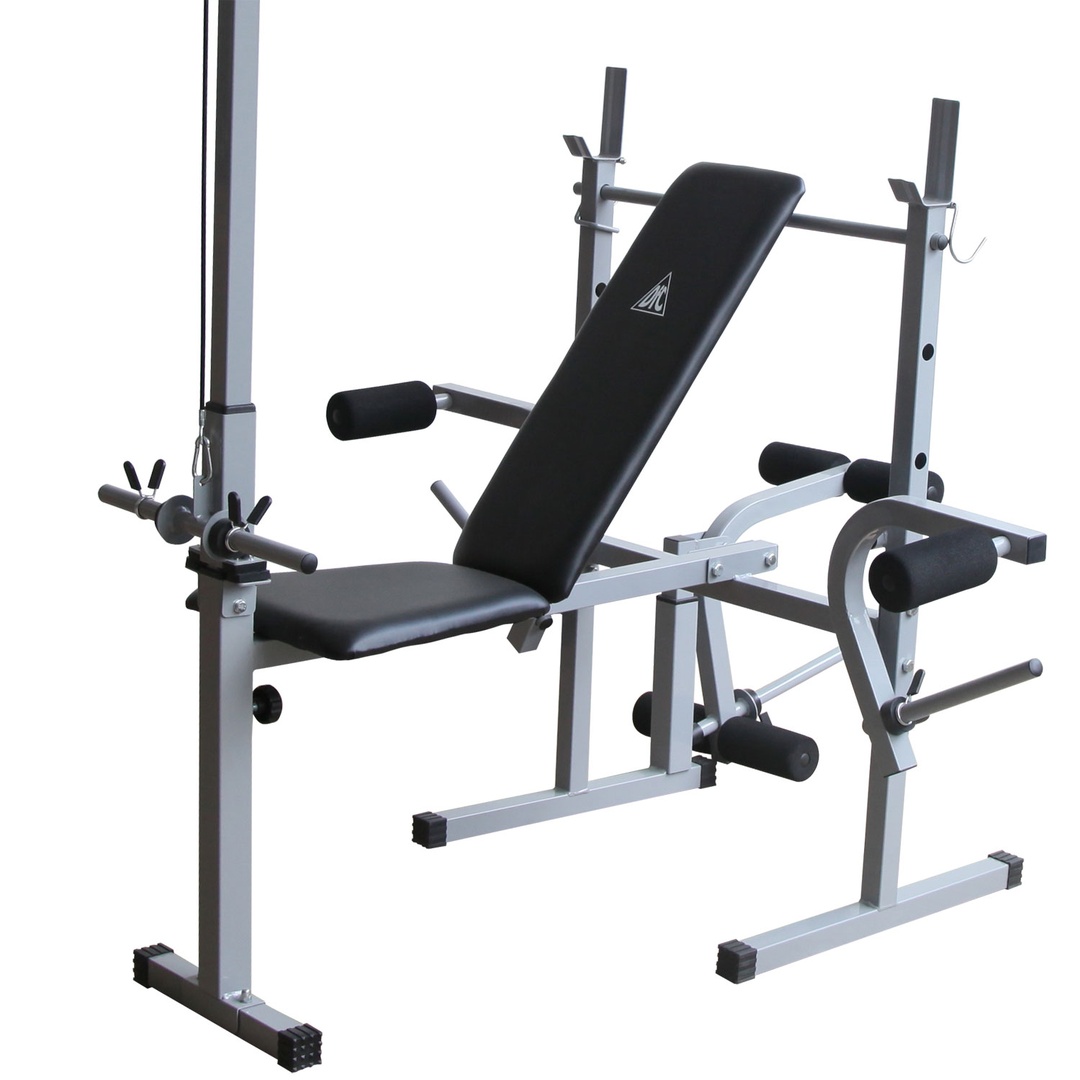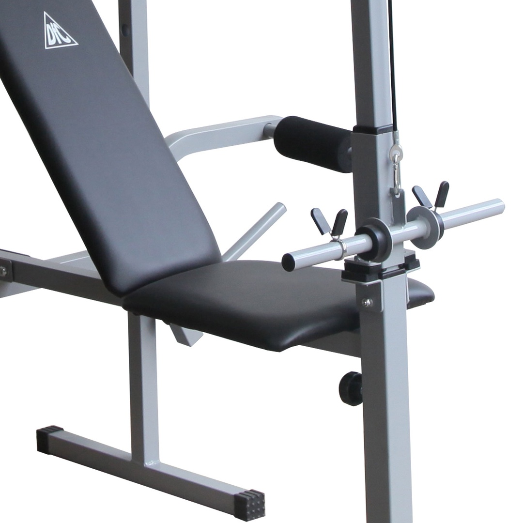 Позволяет выполнять упражнения: жим лежа, сгибание и разгибание ног в коленном суставе, тяга сверху, баттерфляй