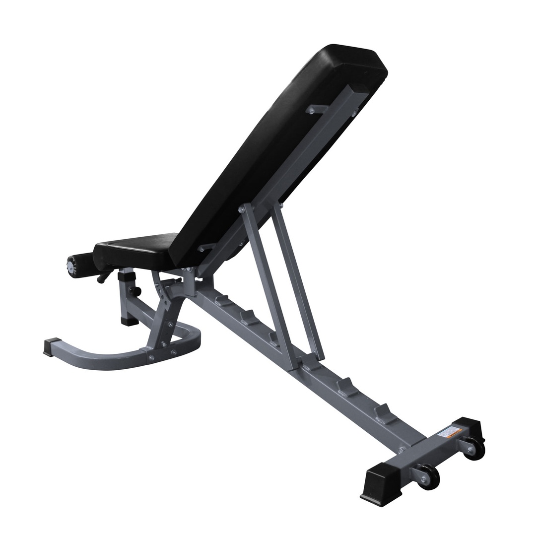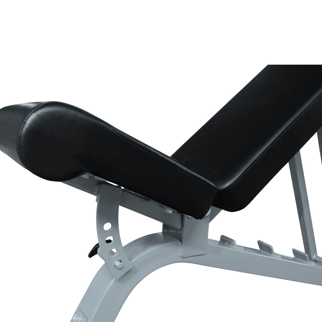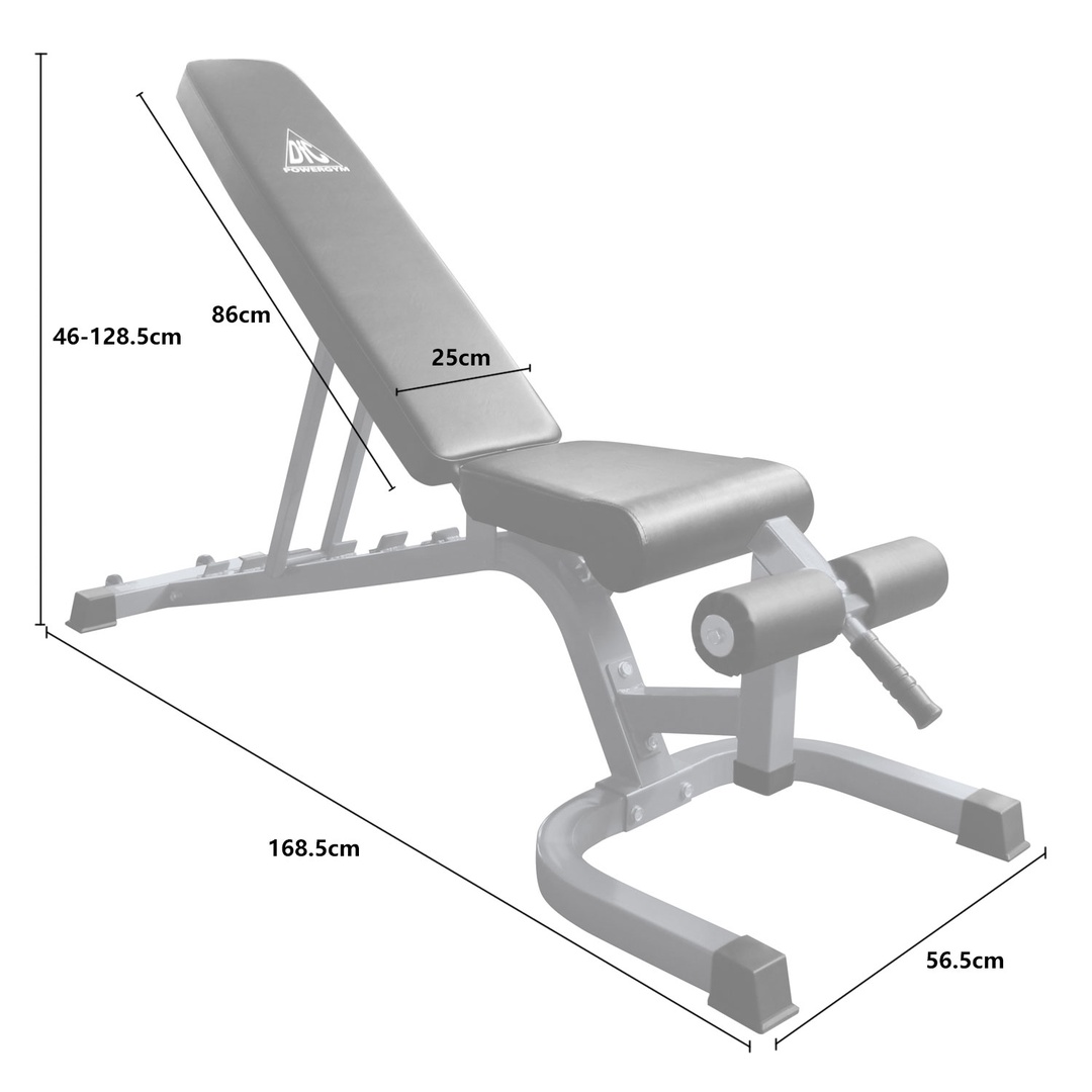 Сиденье скамьи регулируется по углу наклона в широком диапазоне. Фиксация в нужном положении с помощью упора с обратной стороны скамьи. 6 положений. Сиденье и валики для ног так же регулируются.