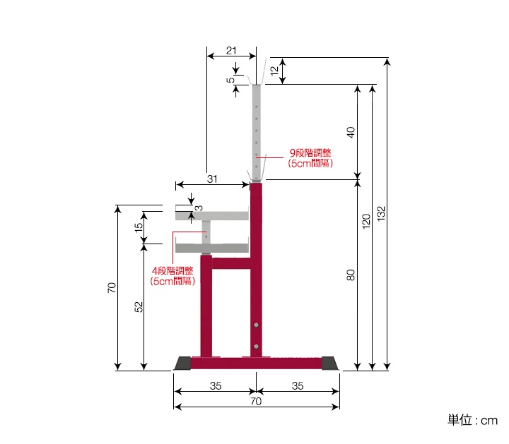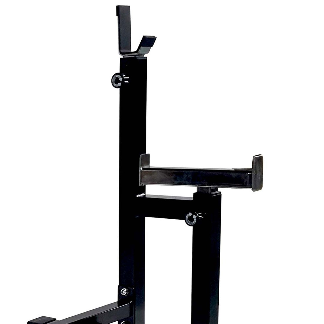 Стойки под штангу возможно установить на расстоянии 70 или 123 см друг от друга, и регулируются по высоте в диапазоне от 85 до 111 см.