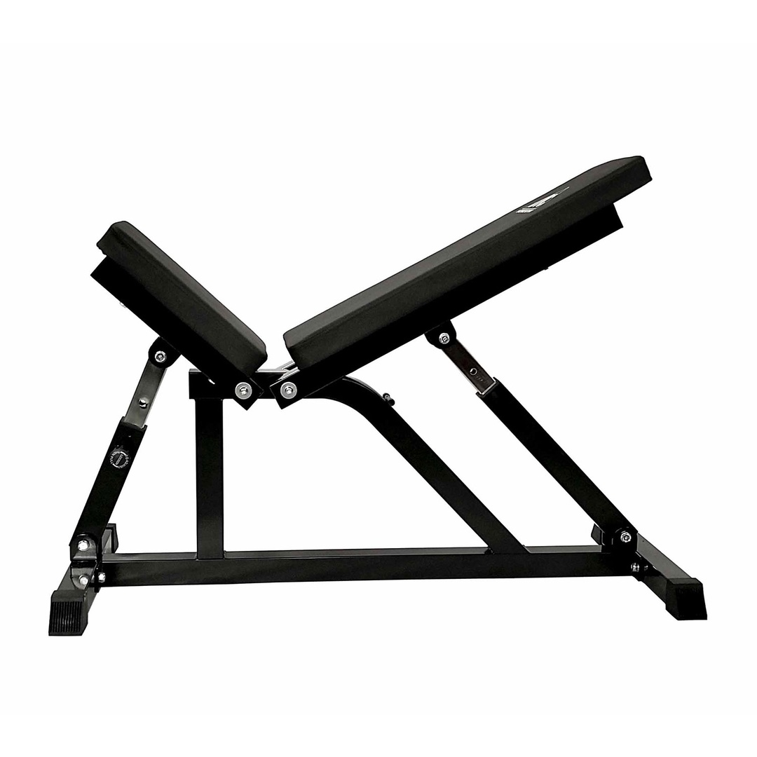 Сиденье и спинка скамьи регулируется по углу наклона в широком диапазоне. Фиксация в нужном положении с помощью удобной подпружиненной ручки.