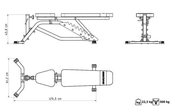 Регулируемая скамья MARBO SPORT MS-L101, с максимальной нагрузкой 300 кг, сочетает в себе все необходимые возможности для выполнения различных жимовых упражнений, как в домашних условиях, так и в небольших коммерческих залах, таких как: жим штанги от груди (горизонтальный, под положительным или отрицательным углом); жим/сведение/разведение гантелей (горизонтальный, под положительным или отрицательным углом).