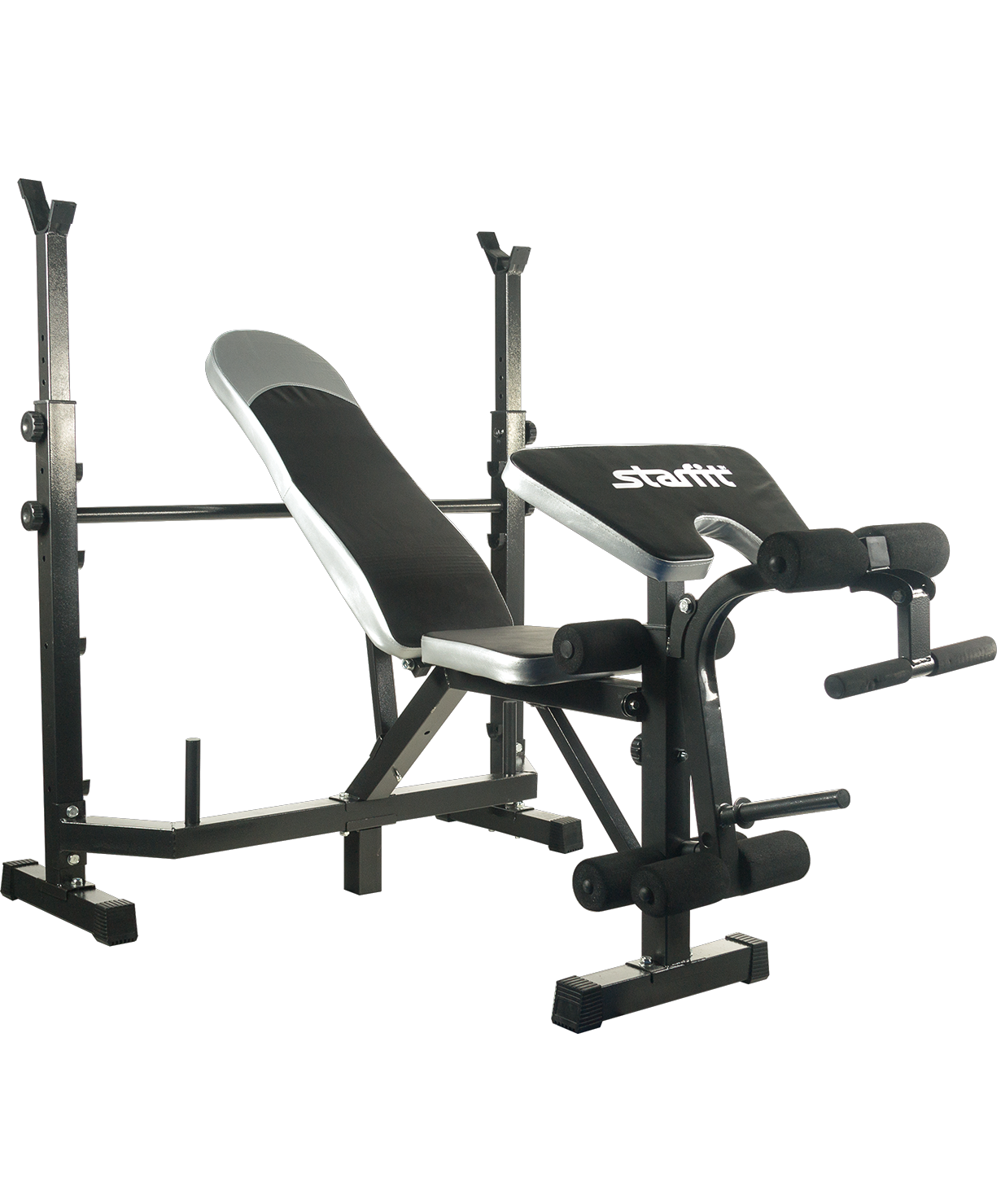 Скамья под штангу ST-102 универсальная предназначена для тренировки мышц груди, пресса, бицепса плеча, мышц ног от STARFIT.