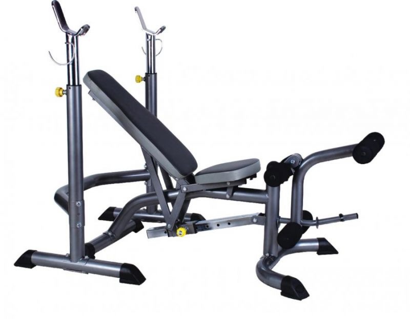 Многофункциональная силовая скамья под штангу. Складная конструкция. подставка для штанги баттерфляй блок для ног съемная парта для бицепсов. Доступные упражнения: Жимы.