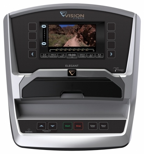 Консоль Elegant является разумным компромиссом для тех пользователей, которые готовы платить за комфорт, расширенную функциональность и стильный внешний вид, однако не видят необходимости в приобретении топовой комплектации с максимальными возможностями. Итак, что есть? Во-первых, это 7-ми дюймовый полноцветный LCD дисплей c управлением по принципу ATM. Он с первой минуты создает самые позитивные эмоции – это даже не столько информативность и удобство управления, сколько ощущение обладания высокотехнологичным продуктом. Во-вторых, встроенная в консоль видеокарта для воспроизведения уникальной технологии так называемого «виртуального ландшафта» Virtual Active™ и Passport™. Виртуальный ландшафт является сложным комплексом высокотехнологических решений с использованием самых последних достижений в электронике, программном обеспечении и биомеханике. В основе лежит использование интерактивного видео, синхронизированного с движениями пользователя. Сюжеты для Virtual Active™ и Passport™ сняты и подготовлены специально приглашенной командой профессиональных документалистов. Отличие Virtual Active™ и Passport™ состоит в том, что в первом случае видео ролики воспроизводятся на консоли и не требуют никакого дополнительного оборудования, а для второго подразумевается наличие внешнего телевизора и специального роутера. Для комфортного воспроизведения Virtual Active™ консоль обладает встроенными динамиками. Из других преимуществ Elegant следует выделить расширенный пакет предустановленных тренировочных профилей. Помимо увеличенного количества целевых режимов, здесь есть целых 2 варианта пульсозависимых программ, для более корректного и удобного использования которых в консоль установлен телеметрический приемник (передатчик в виде нагрудного ремня входит в комплект). Безусловного упоминания стоит и уникальный программный комплекс Sprint 8™ известнейшего американского фитнес тренера Фила Кэмпбэлла. Режим направлен на преодоление снижения тонуса мышц и количества гормона роста (соматотропина) в среднем возрасте. Sprint 8™ также борется с увеличением веса, способствует укреплению общего иммунитета и получению “энергетической подпитки” организма. И все это требует не более 3-ех занятий по 20 минут в неделю! Резюмируя, Vision U20 с консолью Elegant можно рекомендовать пользователям, которые, с одной стороны, хотят иметь самый современный продукт, объединяющий инновации и дизайн, - с другой, придают самое важное значение эффективности и комфорту.