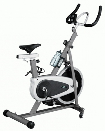 Принцип работы тренажера прост - как и у велосипеда, тормозные колодки прижимаются к колесу. Чем они сильнее прижимаются, тем больше нагрузка. У тренажеров этого типа маховик довольно массивный, что обеспечивает необходимую для тренировки плавность хода. Нагрузка регулируется вручную. Велотренажер оборудован удобными ручками с регулируемым углом наклона и высотой руля. Тренажер удобно перемещать по квартире, благодаря транспортировочным роликам. Седло регулируется по горизонтали и вертикали. Педали с фиксирующими ремнями - мышцы отрабатывают полный круг вращения.