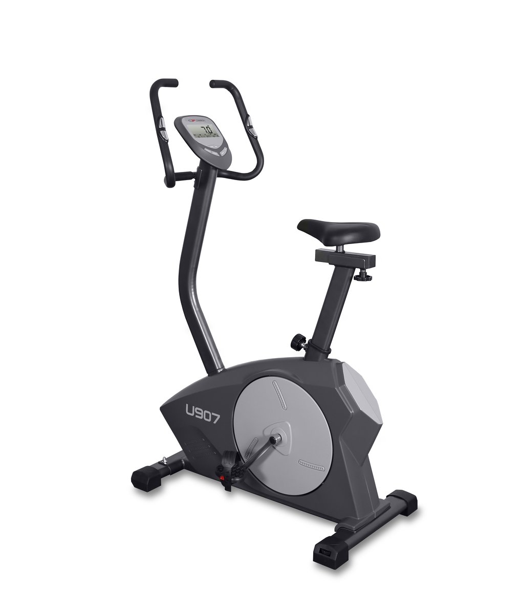 CARBON FITNESS U907 с электромагнитной системой нагружения относится к классу тяжелых крупногабаритных велоэргометров для домашнего применения. Его отличает мощная рамная конструкция из усиленного профиля, выдерживающая вес пользователя до 150 кг.