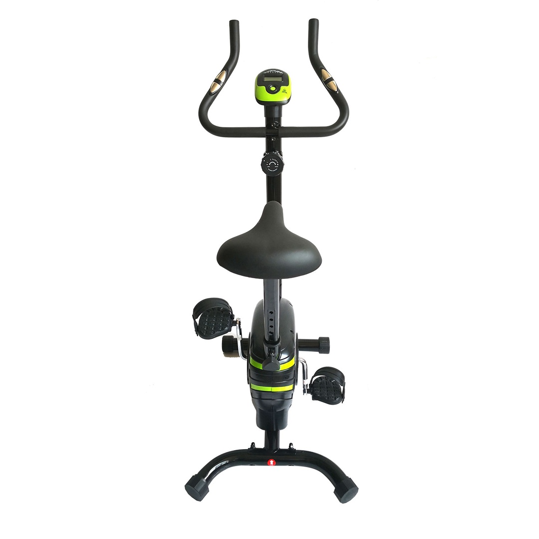 Компактный велотренажер с вертикальной посадкой и комфортным сидением.