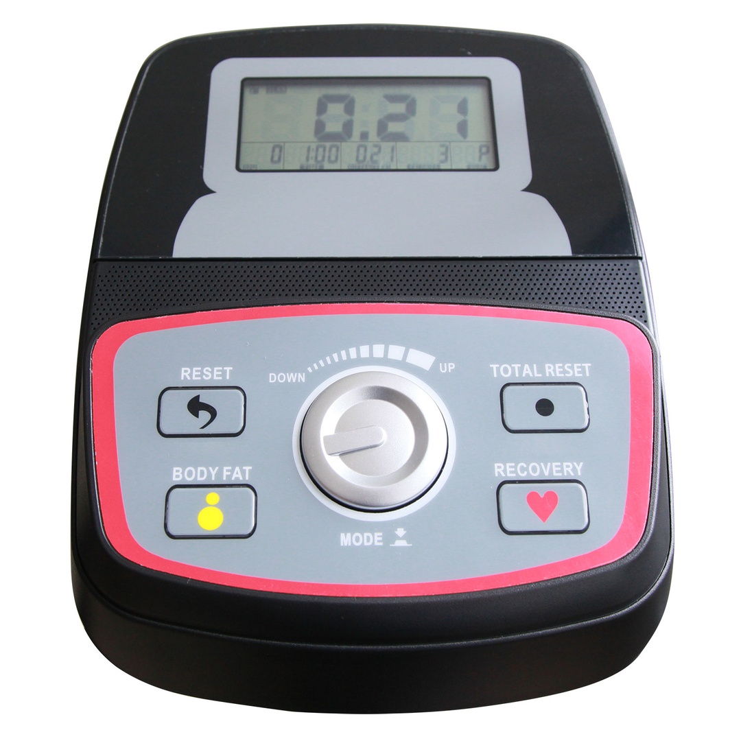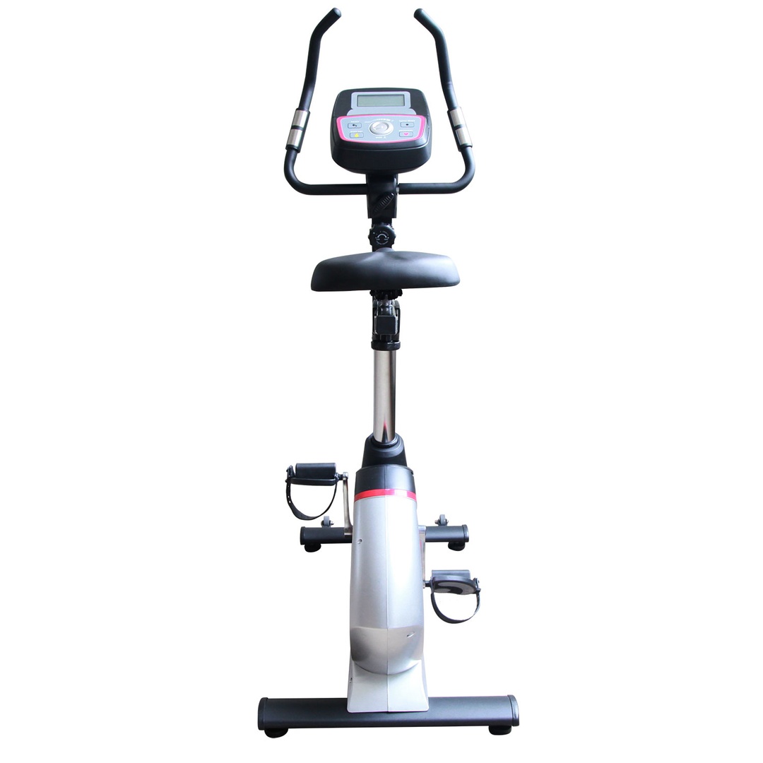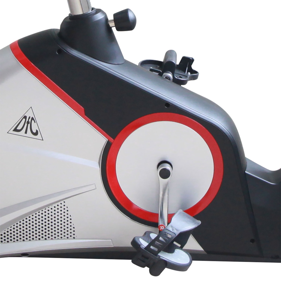 Датчики пульса расположены на руле. Широкие педали с регулируемыми ремешками.
