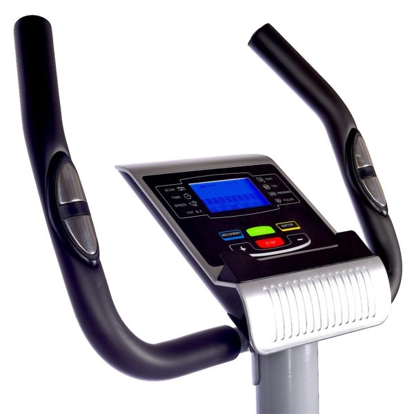 Компьютер с LCD дисплеем прост в управлении, и отображает все основные параметры тренировки – время, пройденную дистанцию, диаграмму тренировки, скорость, расход калорий и пульс, что позволяет эффективно контролировать весь процесс тренировки. Сенсорные датчики съема пульса вмонтированы в руль тренажера. Тренажер имеет 24 уровня нагрузки. В программный пакет входят 24 программы: ручная, 13 предустановленных программ, Watt Control program, Body Fat program, 4 пульсозависимые программы, 4 пользовательские программы.