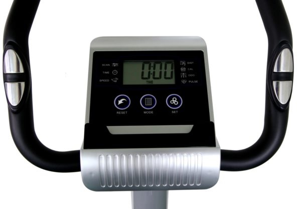 Компьютер с LCD дисплеем прост в управлении, и отображает все основные параметры тренировки – время, пройденную дистанцию, скорость, расход калорий, обороты в минуту и пульс, что позволяет эффективно контролировать весь процесс тренировки. Сенсорные датчики съема пульса вмонтированы в руль тренажера. Нагрузка регулируется механическим путем в 8 положениях.