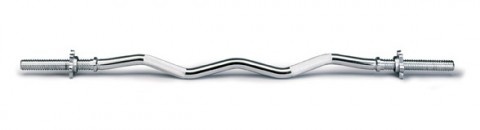 Традиционный EZ-гриф для силового тренинга. Форма грифа позволяет снизить нагрузку на кисти спортсмена при выполнении ряда упражнений.