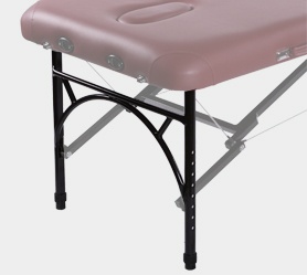 Высота стола регулируется в 8-ми положениях в диапазоне от 60 до 81 см. Аркообразная форма передней и задней частей рамы позволяет массажисту сидя делать массаж головы и плеч. Длина стола без учета подголовника составляет 184 см., ширина – 76 см., максимальный вес пользователя 227 кг.
