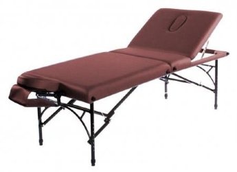 Высота стола регулируется в 8-ми положениях в диапазоне от 60 до 81 см. Аркообразная форма передней и задней частей рамы позволяет массажисту сидя делать массаж головы и плеч. Длина стола без учета подголовника составляет 184 см., ширина – 76 см., максимальный вес пользователя 227 кг.