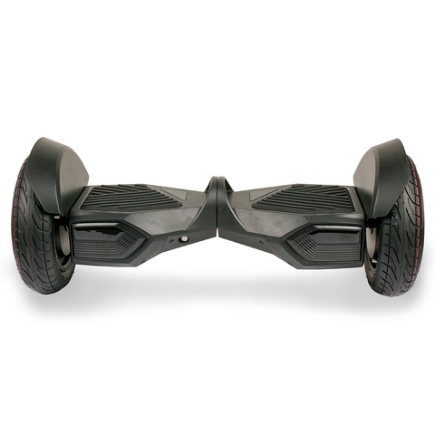 Камерные колеса диаметром 10” дюймов и мощный мотор подойдут для уверенного катания по бездорожью. Верхняя часть корпуса выполнена из металла, для прочности и защиты от ударов. В центре находится ручка для удобной транспортировки устройства.
