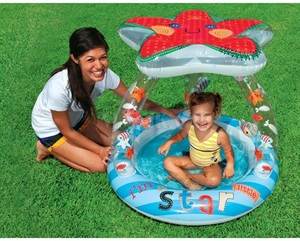 Этот миниатюрный игровой комплекс-бассейн предназначен для самых маленьких. Надувной навес в форме звезды, расположенный на надувной дуге, защищает малыша от прямых солнечных лучей.
