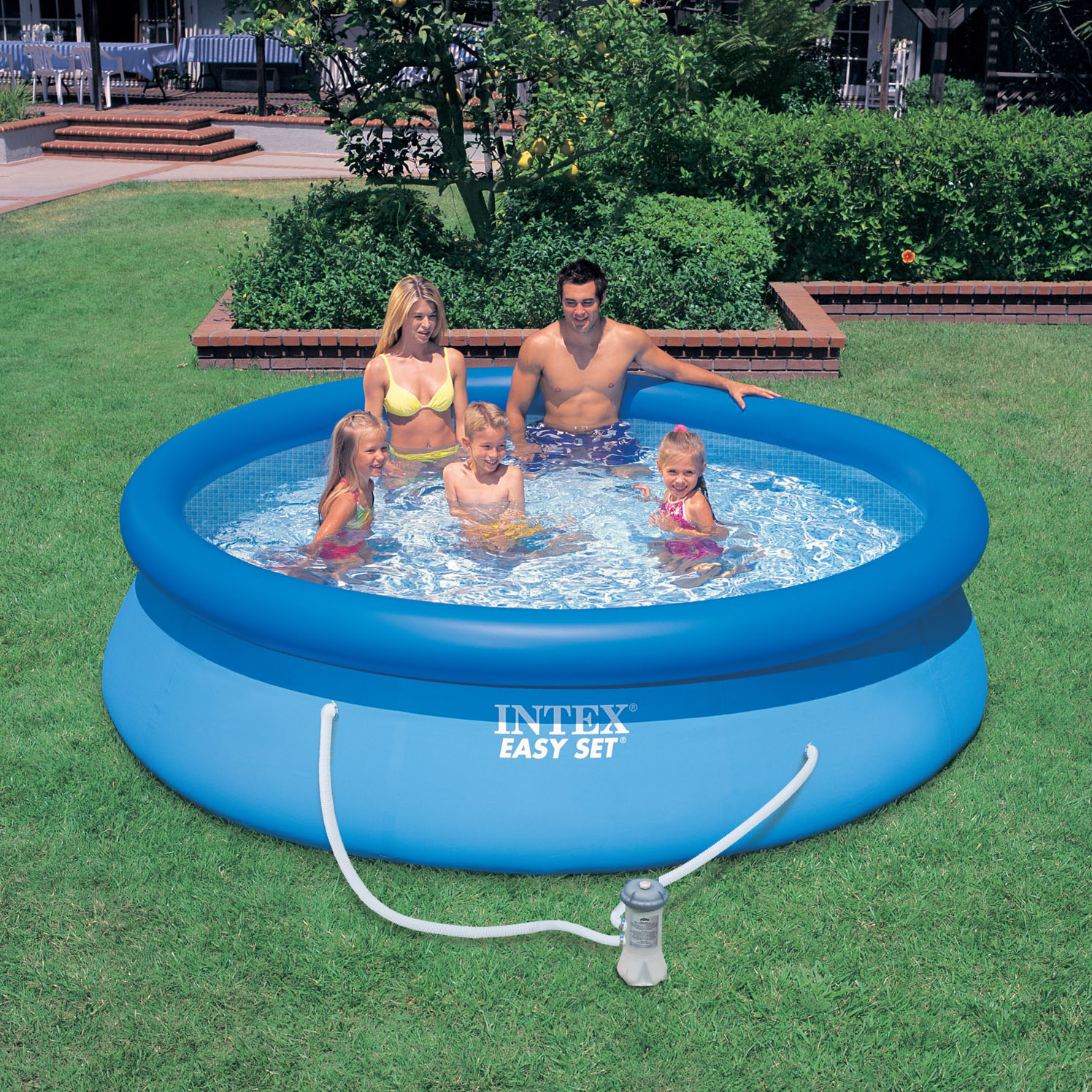 Высота, вместимость и форма емкости различны, можно подобрать бассейн по потребностям. Если позволяет площадь участка, то можно приобрести бассейн для одновременного купания всей семьи. Для маленького участка также есть подходящие компактные модели. Очистка воды производится с помощью насоса, который входит в комплект.