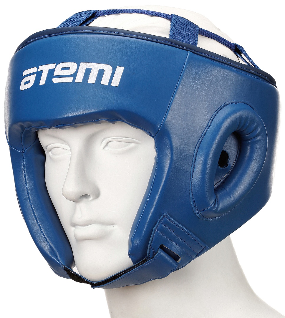 Фиксация осуществляется при помощи липучек на затылке и регулировки на подбородке Производство — Atemi, Россия.