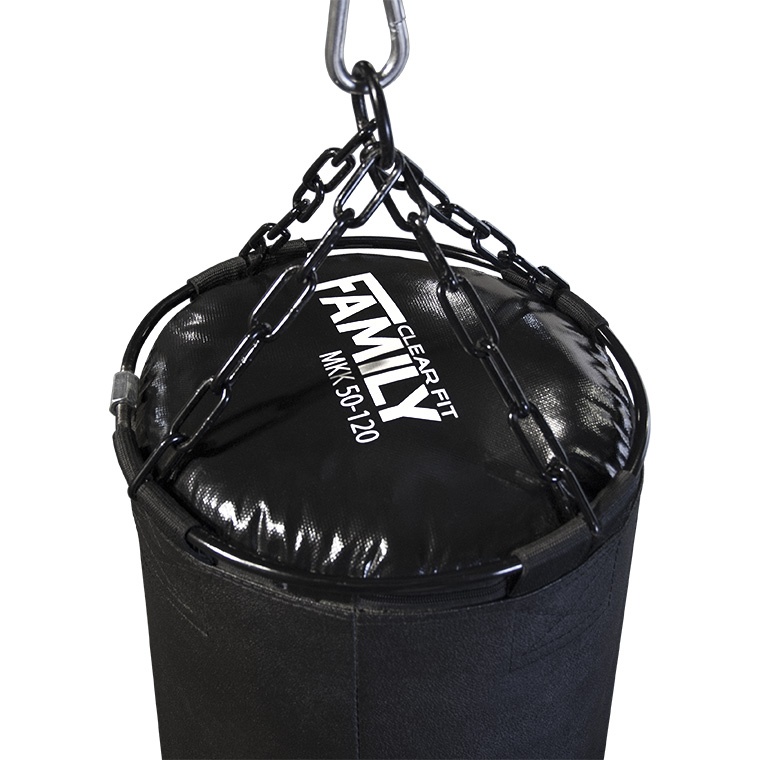 Крепление из металлического круга и тройного цепного подвеса обеспечивает надежное цельное устройство, которое прочно вшито в мешок. Подходит для разных видов единоборств.
