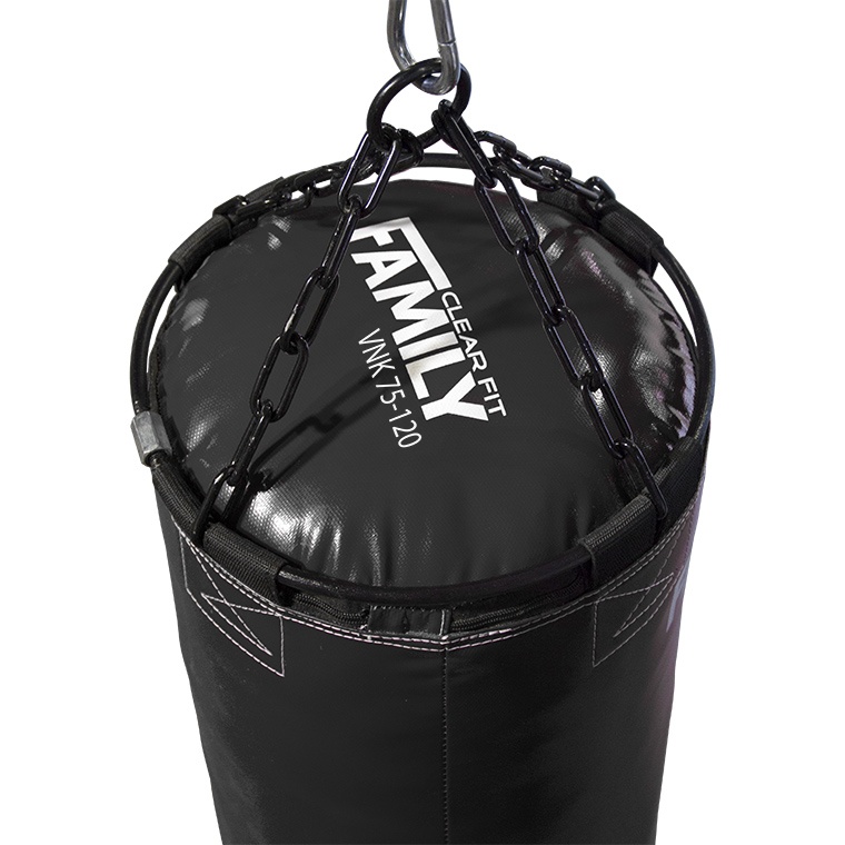 Прошитый металлический подвес из кольца по диаметру мешка и система цепей образуют единое изделие, обеспечивая высокую прочность и надежность. Подходит для разных видов единоборств. Рекомендовано для комплексных тренировок или для работы в тяжелом весе.