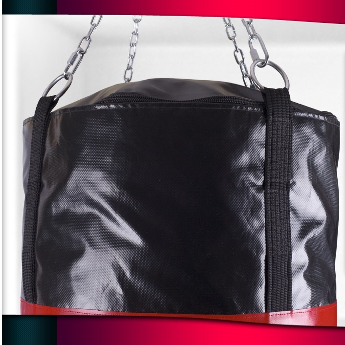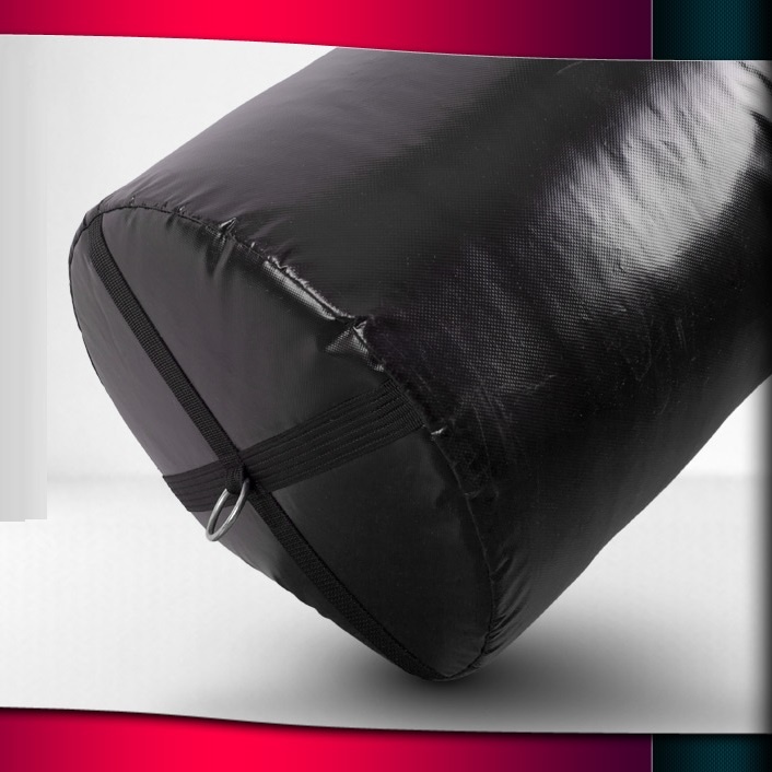 Красная полоска материала посередине мешка выделяет одну из зон тренировки ударов, в то же время сохраняя дополнительный слой материала в месте, которое является наиболее уязвимым к истиранию.