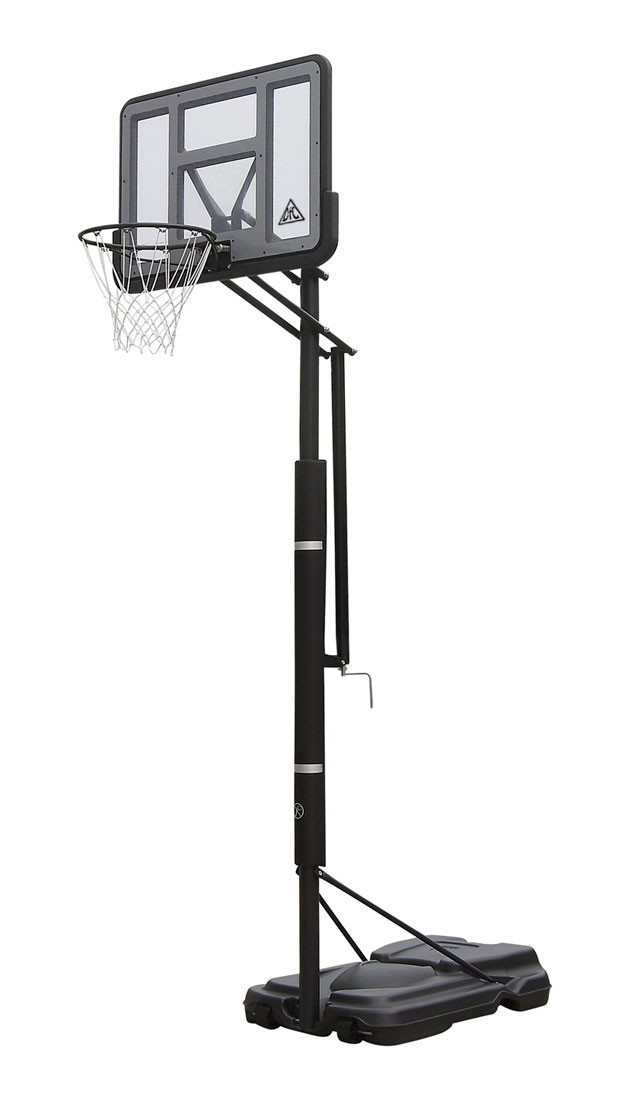 Ударопрочный баскетбольный щит стойки выполнен из многослойного прочного материала "акрил" размером по диагонали 44 дюйма. Стойка оснащена стальным кольцом с системой быстрого освобождения сетки.