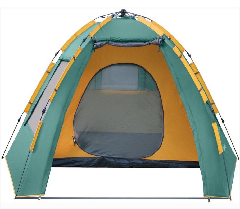 Высокая кемпинговая палатка с полуавтоматическим каркасом. Установка за 1 минуту. Двухслойная палатка с большим тамбуром. Возможна отдельная установка тента. Легко ставиться одним человеком.