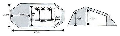 | Размеры внешней палатки (ДхШхВ) | 400x230x180 см |