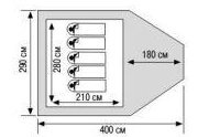 | Размеры внешней палатки (ДхШхВ) | 400x290x190 см |