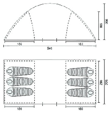 | Размеры внешней палатки (ДхШхВ) | 540x225x200 см |
