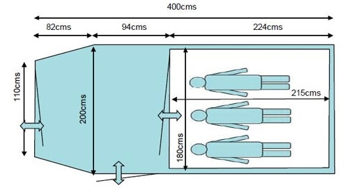 | Размеры внешней палатки (ДхШхВ) | 355x215x125 см |