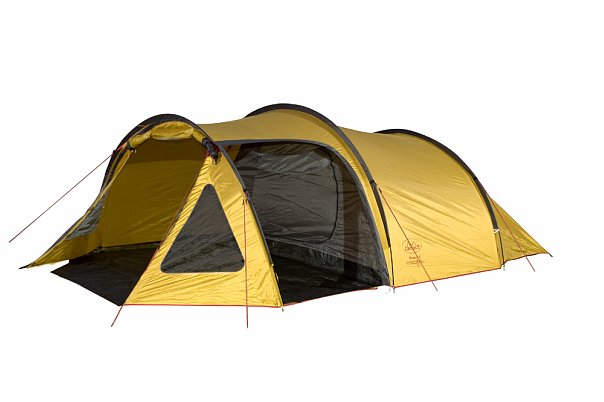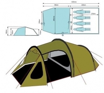 Палатка-тоннель. Надежное убежище от дождя и замечательное место для ночевки компании из 4 человек. Тамбур палатки позволяет хранить в ней любое снаряжение, вплоть до велосипедов. Помещение тамбура великолепно освещается благодаря прозрачным окнам и широким створкам дверей, закрываемых москитными сетками.