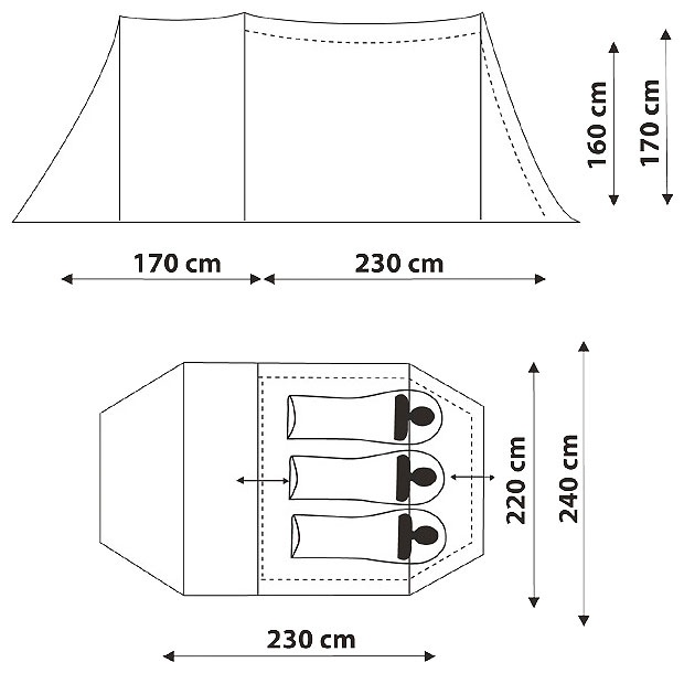 Для обеспечения максимального комфорта – спальное отделение имеет два входа и два вентиляционных окна, которые оборудованы антимоскитными сетками. Для увеличения внутреннего пространства Вы можете снять или не устанавливать спальное отделение.