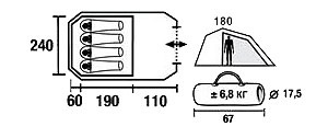 | Размеры внешней палатки (ДхШхВ) | 360x240x180 см |
