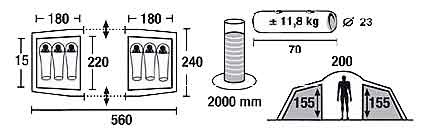 | Размеры внешней палатки (ДхШхВ) 560x240x200 см | |