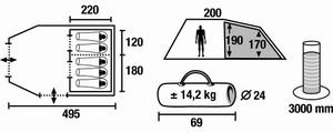 | Размеры внешней палатки (ДхШхВ) | 495x200 см |