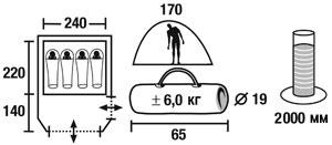 | Размеры внешней палатки (ДхШхВ) | 360x240x170 см |