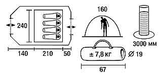 | Размеры внутренней палатки (ДхШхВ) | 210x240x160 см |