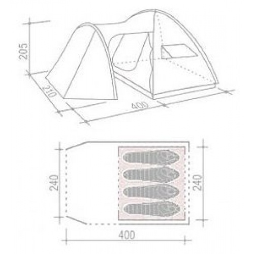 | Размеры внешней палатки (ДхШхВ) | 400x260x205 см |