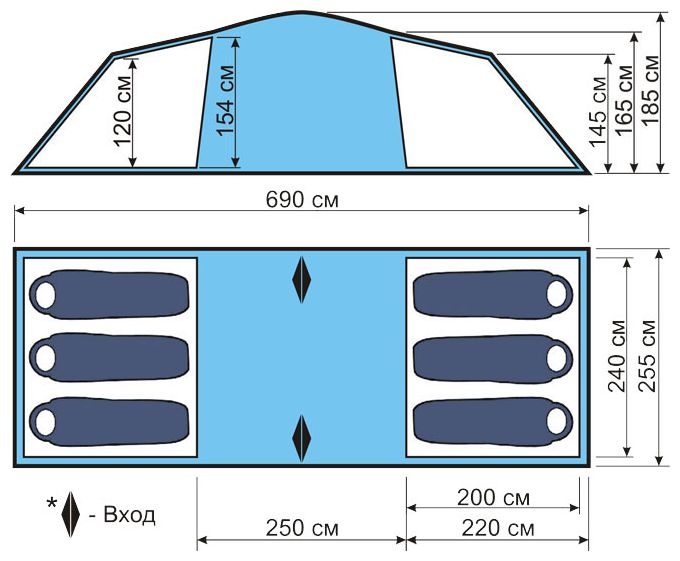 стенка и крыша: 75D POLYESTER TAFFETA 185T PU 3000мм, швы проварены
