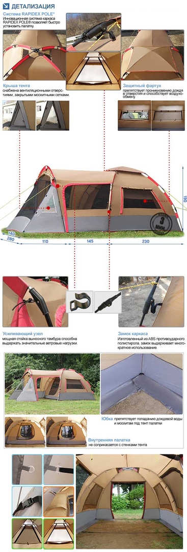 | Водостойкость тента/дна | 5000 / 5000 мм в.ст. |