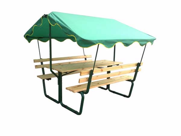 Красивый яркий тент беседки защитит Вас от лучей солнца или капель дождя.