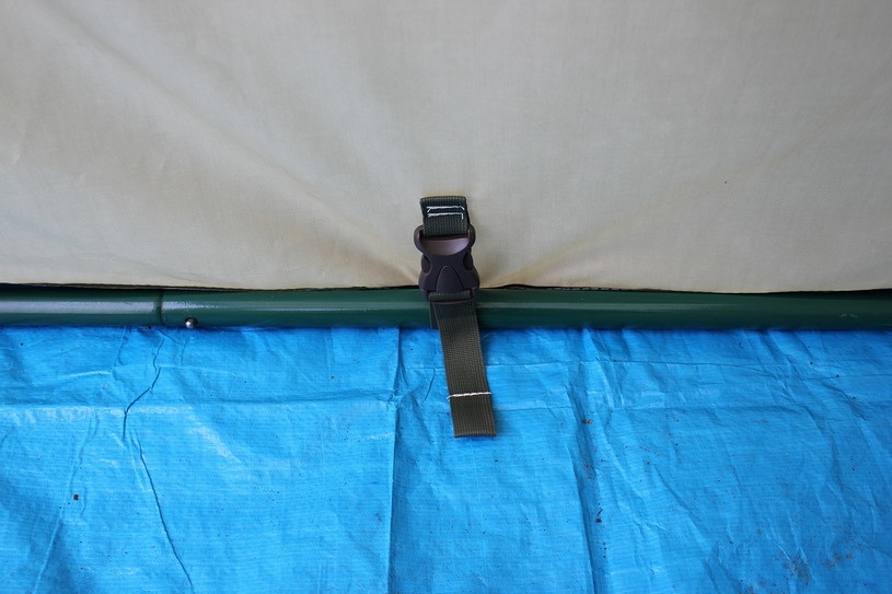 Каркас палатки-кухни имеет нижнее основание и верхнюю обвязку, которые повышают прочность конструкции.