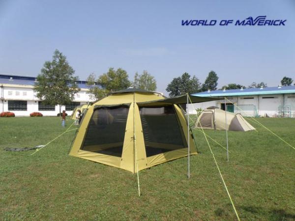 Тент-шатер Maverick Fortuna 300 - Основное предназначение шатра – комфортное пребывание на природе небольшой компании. Его размеры позволяют комфортно разместиться внутри группе из 6 человек. Причем его можно использовать как на кратковременных выездах (1-2 дня), так и при длительных походах.