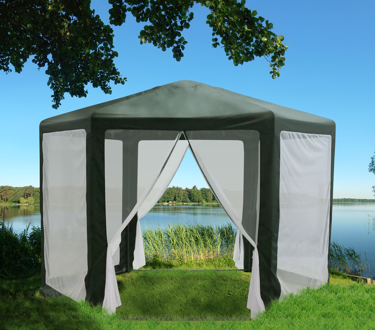 Каркас шатра, сборно-разборный, выполнен в форме шестигранника правильной формы из металлической трубы диаметром 25 мм, покрытой антикоррозийным полимерным покрытием.