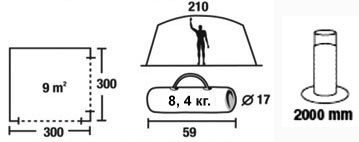 Водостойкость ткани этого шатра 2000 мм и проклеенные швы гарантируют прекрасную защиту от дождя и ветра.